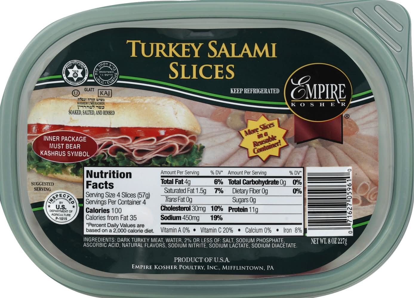 Empire Kosher Turkey Salami Slices (8 oz)