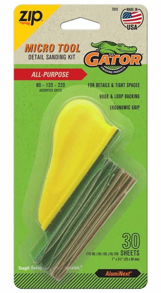 Gator Micro Zip Sander Kit Assorted Grits, 1 In X 3-1/2 In