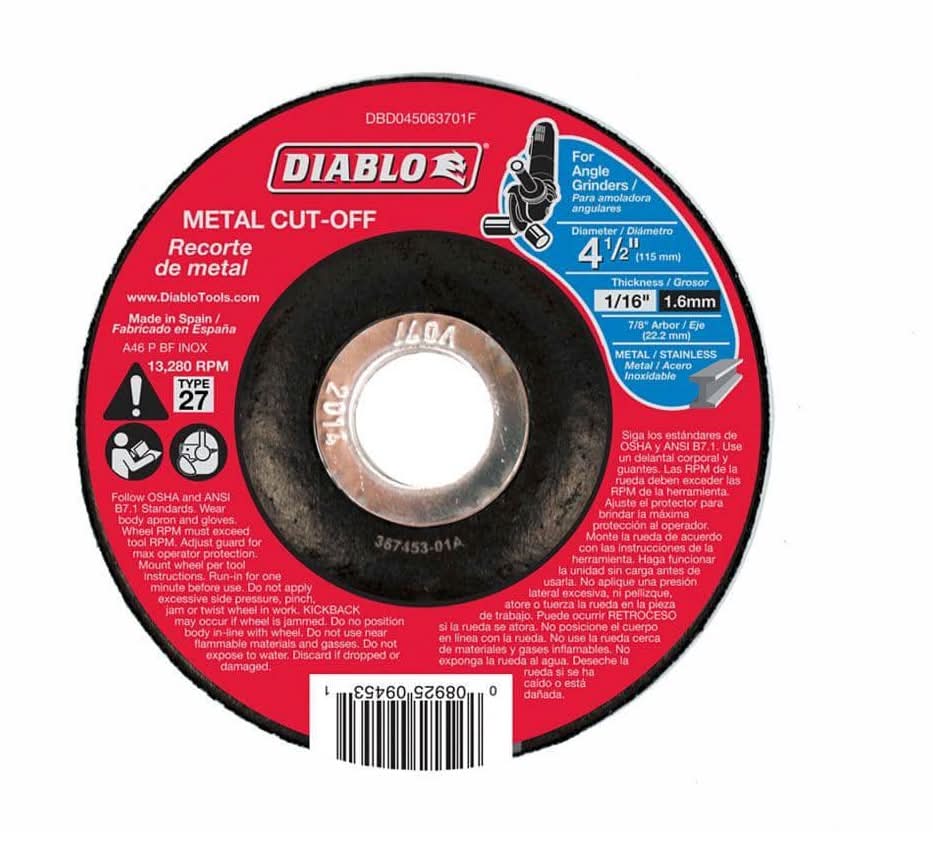Diablo Metal Cut-Off Disc With Type 27 Depressed Center, 4-1/2 In. X 1/16 In. X 7/8 In