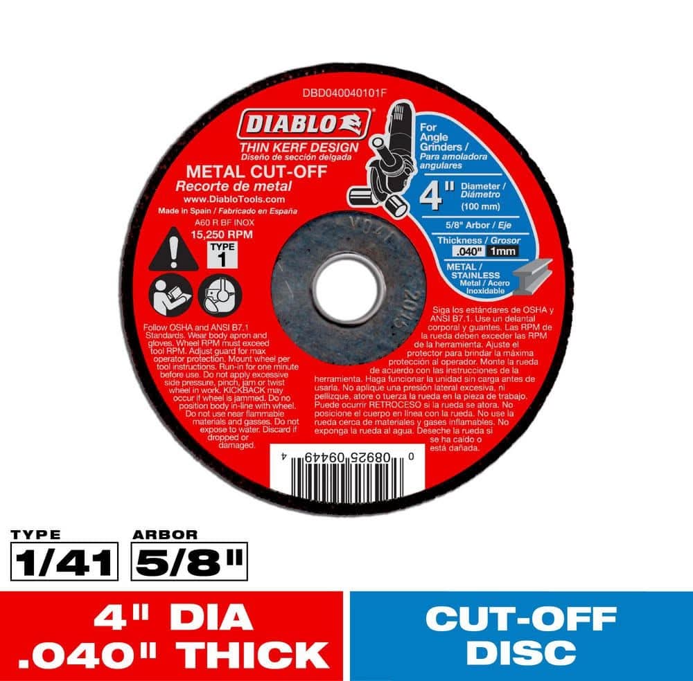 Diablo Metal Cut-Off Disc, 4x0.040x5/8 in