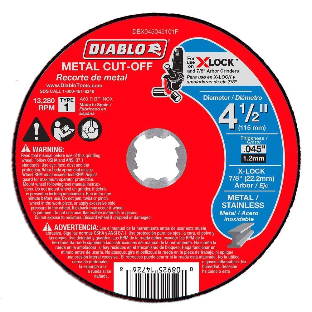 Diablo Thin Kerf Metal Cut-Off Disc For X-Lock & All Grinders, 4 1/2" (5 ct)