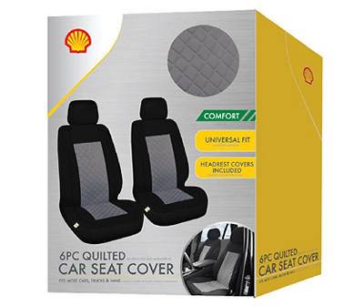 Shell Quilted Car Seat Cover Set, Black-Grey (6 ct)