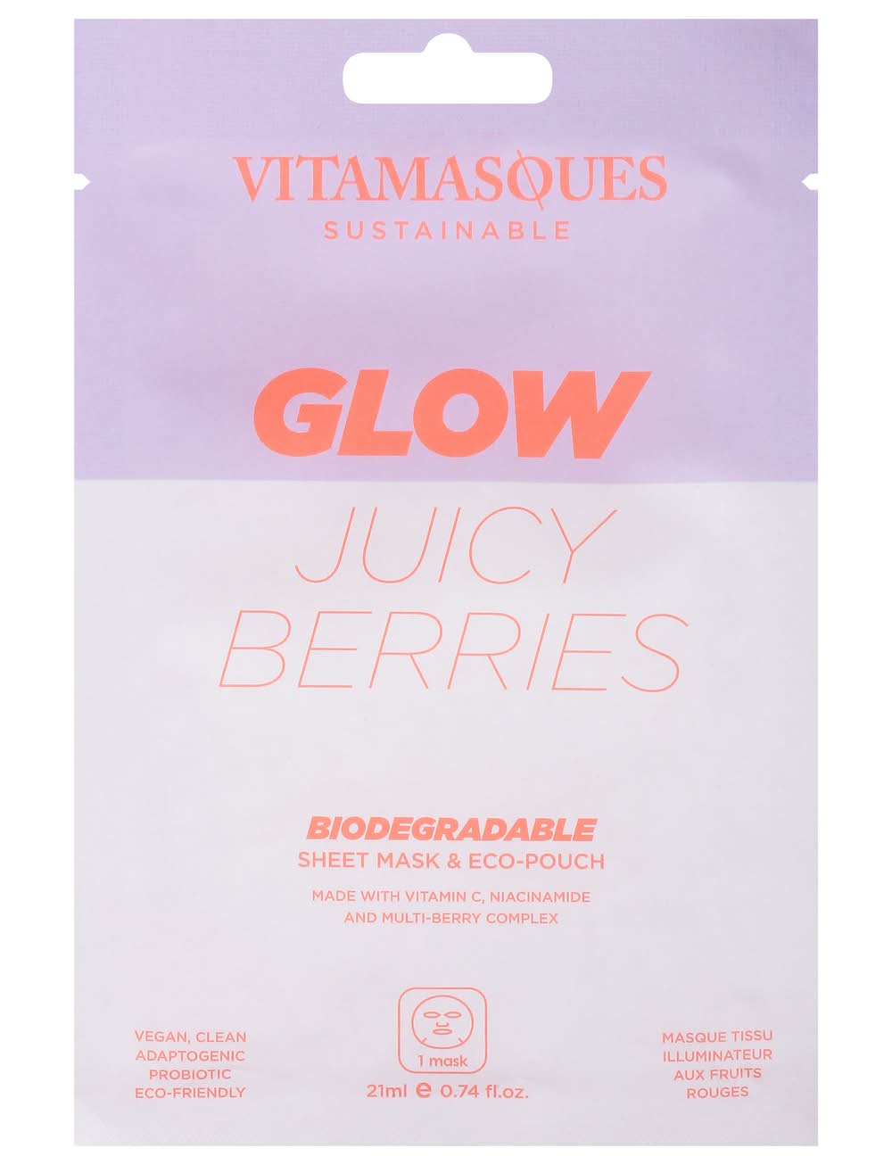 Vitamasques Glow Juicy Berries Biodegradable Sheet Mask & Eco-Pouch (0.74 fl oz)