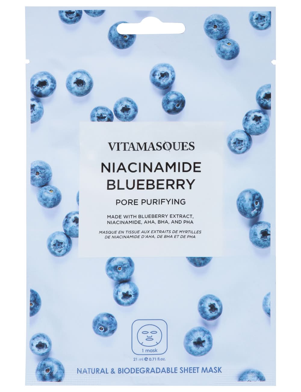 Vitamasques Pore Purifying Niaciamide Natural and Biodegradable Blueberry Sheet Mask (0.71 fl oz)