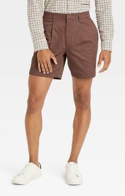 Goodfellow & Co. Midweight Poplin Pleated Trouser Short, Men, 32, Dark Brown