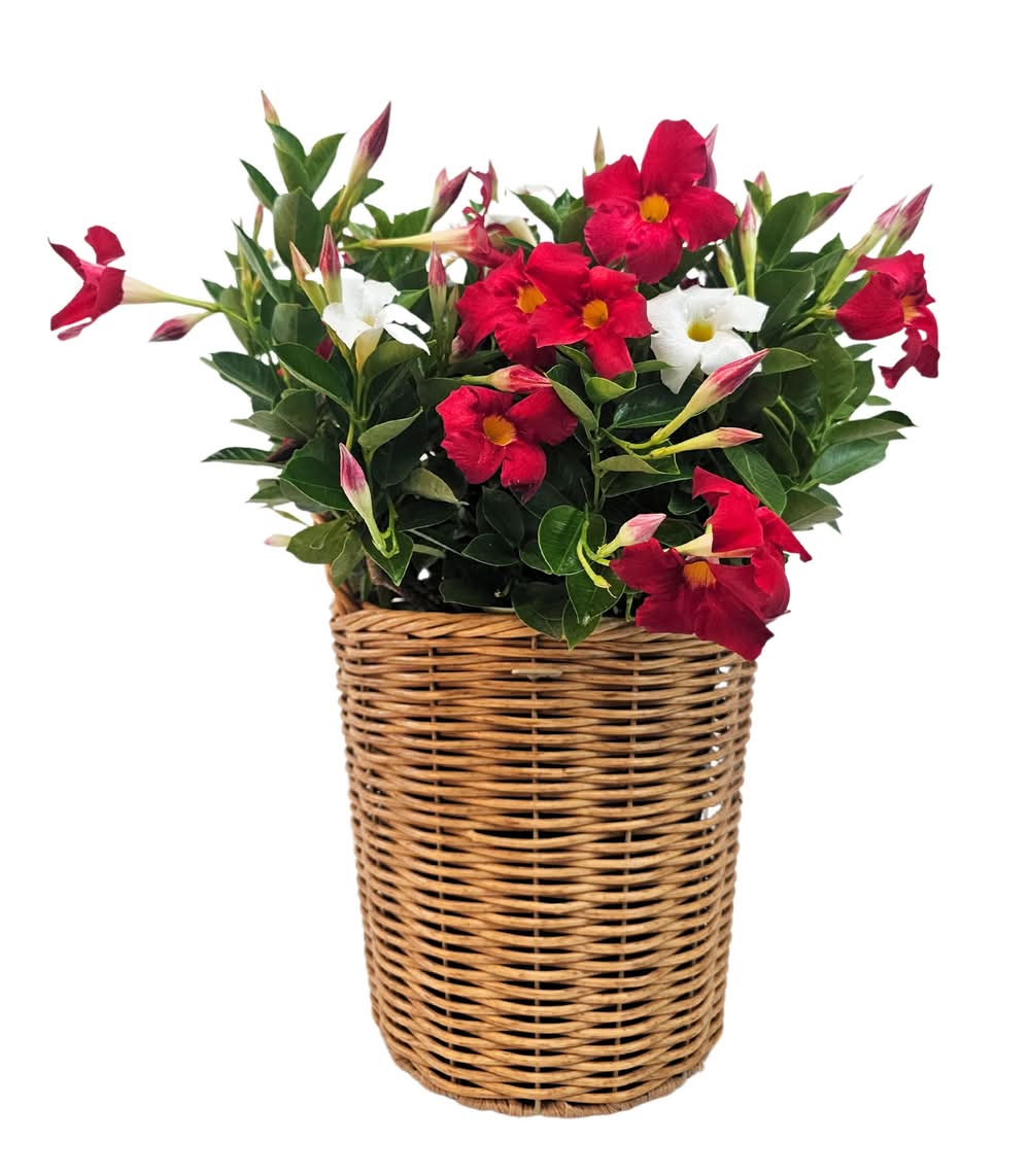 RIO Hanging Basket Dipladenia Flowering Annual Shrub With Red Blooms