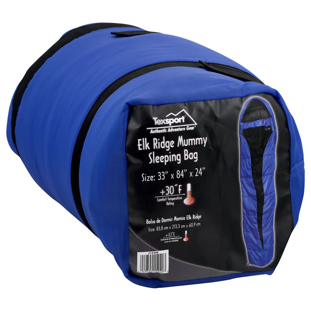 Texsport Elk Ridge Mummy Sleeping Bag, Blue Black