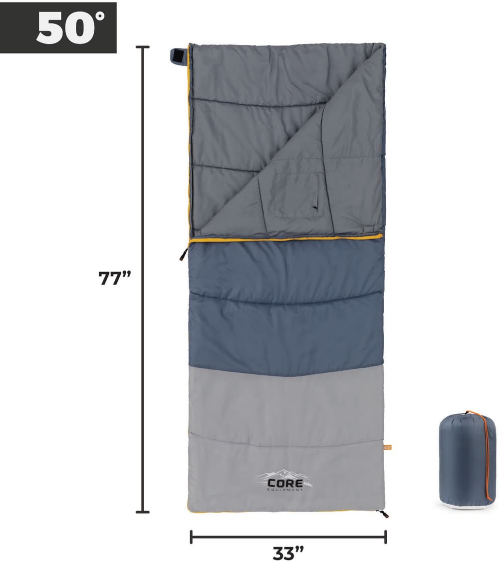 Core Hydration 50 Degree Rectangular Sleeping Bag, 77x33 in, Blue-Gray