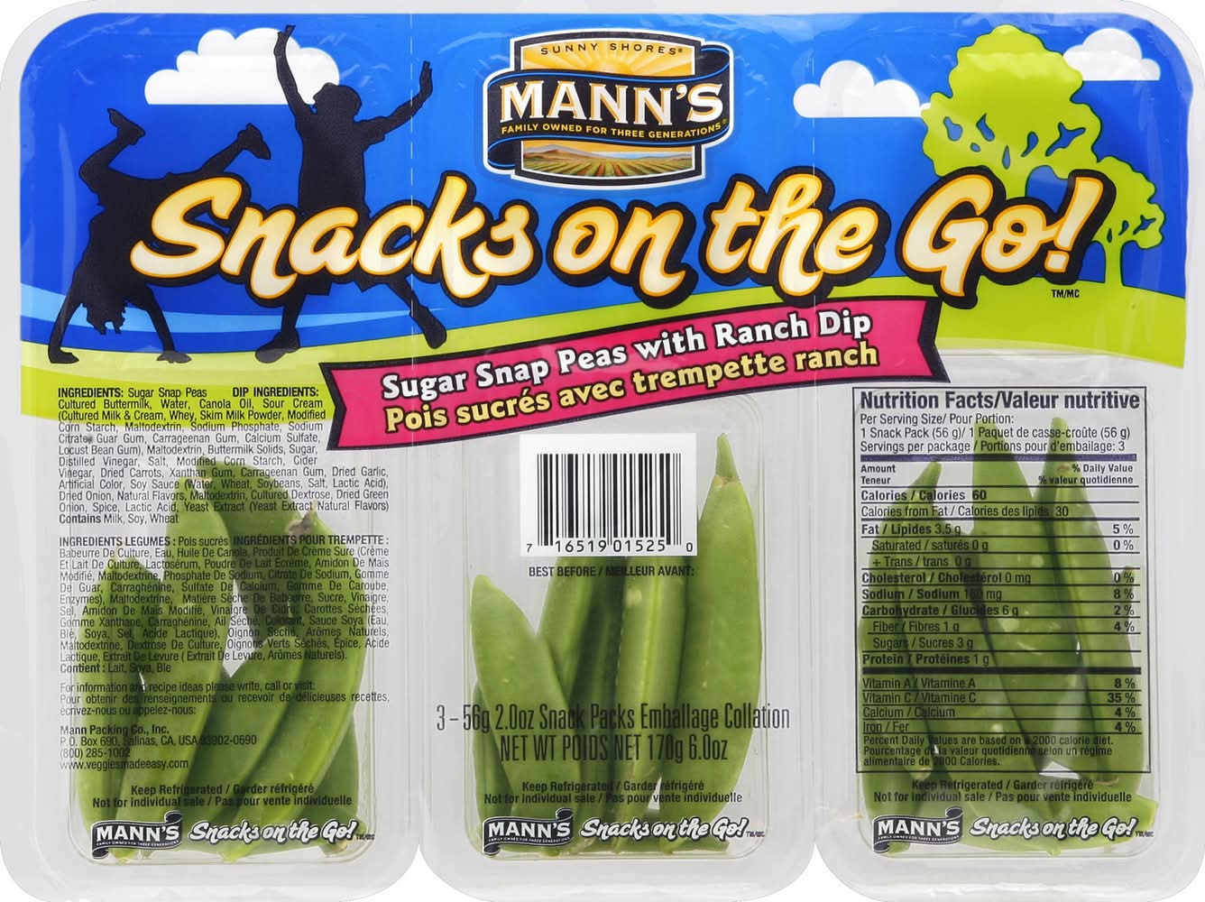 Mann's Sugar Snap Peas (2 oz, 3 ct)