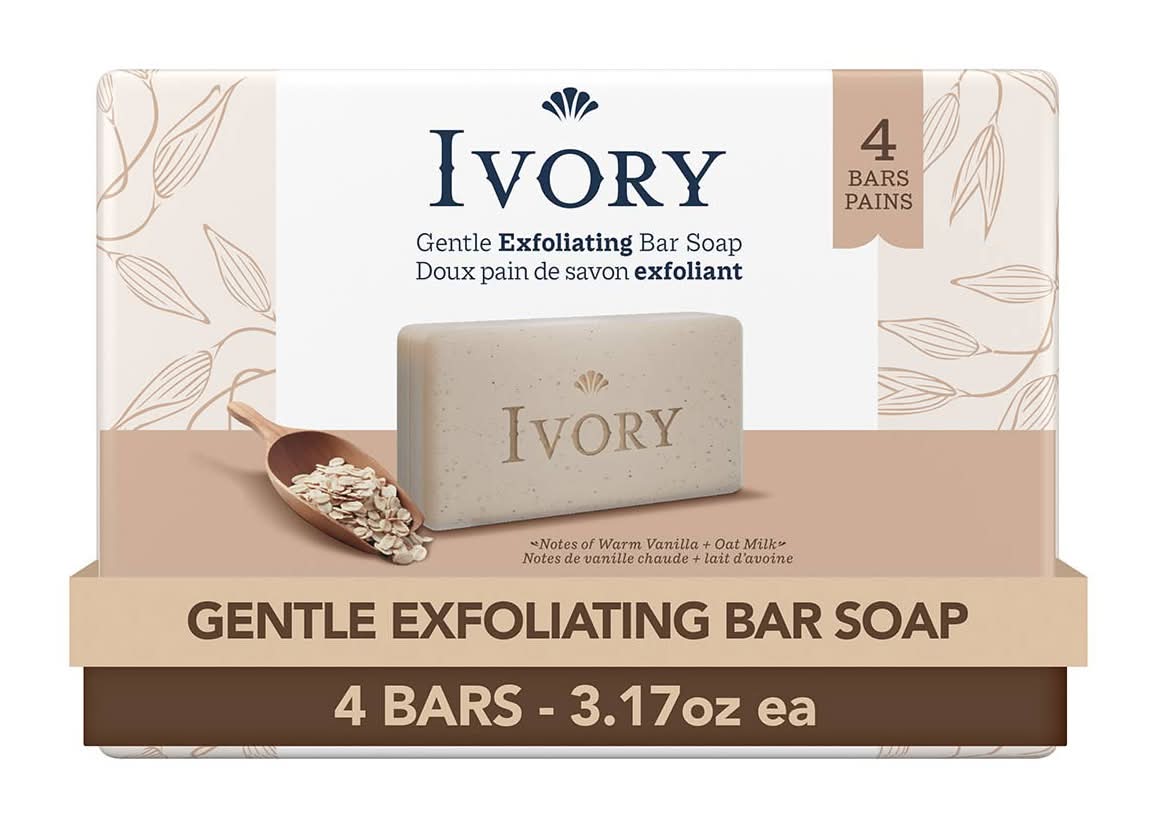 Ivory Gentle Exfoliating Bar Soap, Warm Vanilla-Oat Milk (4 x 3.17 oz)