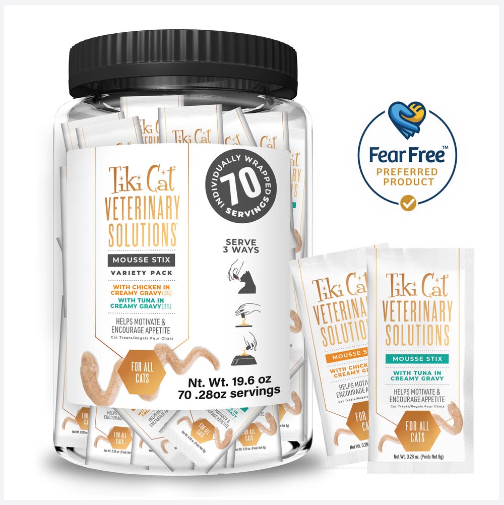Tiki Cat Veterinary Solutions Mousse Stix in Creamy Gravy Variety pack, Chicken-Tuna (70 x 0.28 oz)