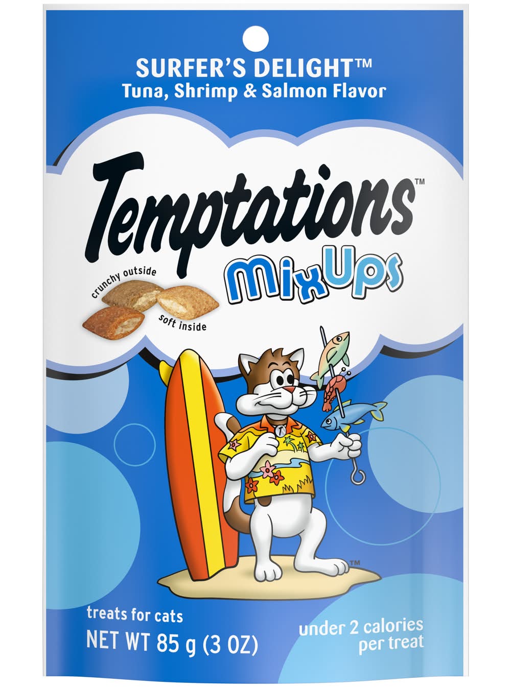 Temptations Surfers' Delight Mixups Crunchy and Soft Cat Treats, Tuna, Shrimp, Salmon (3 oz)