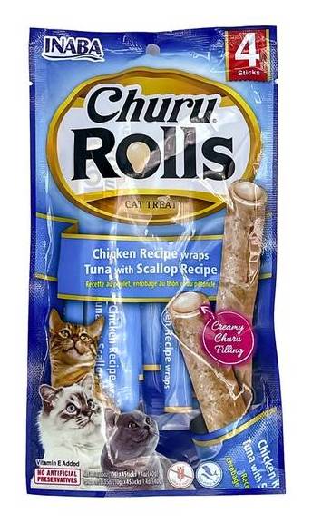 INABA Churu Rolls Cat Chicken Wrap Tuna With Scallop (1.4 oz)