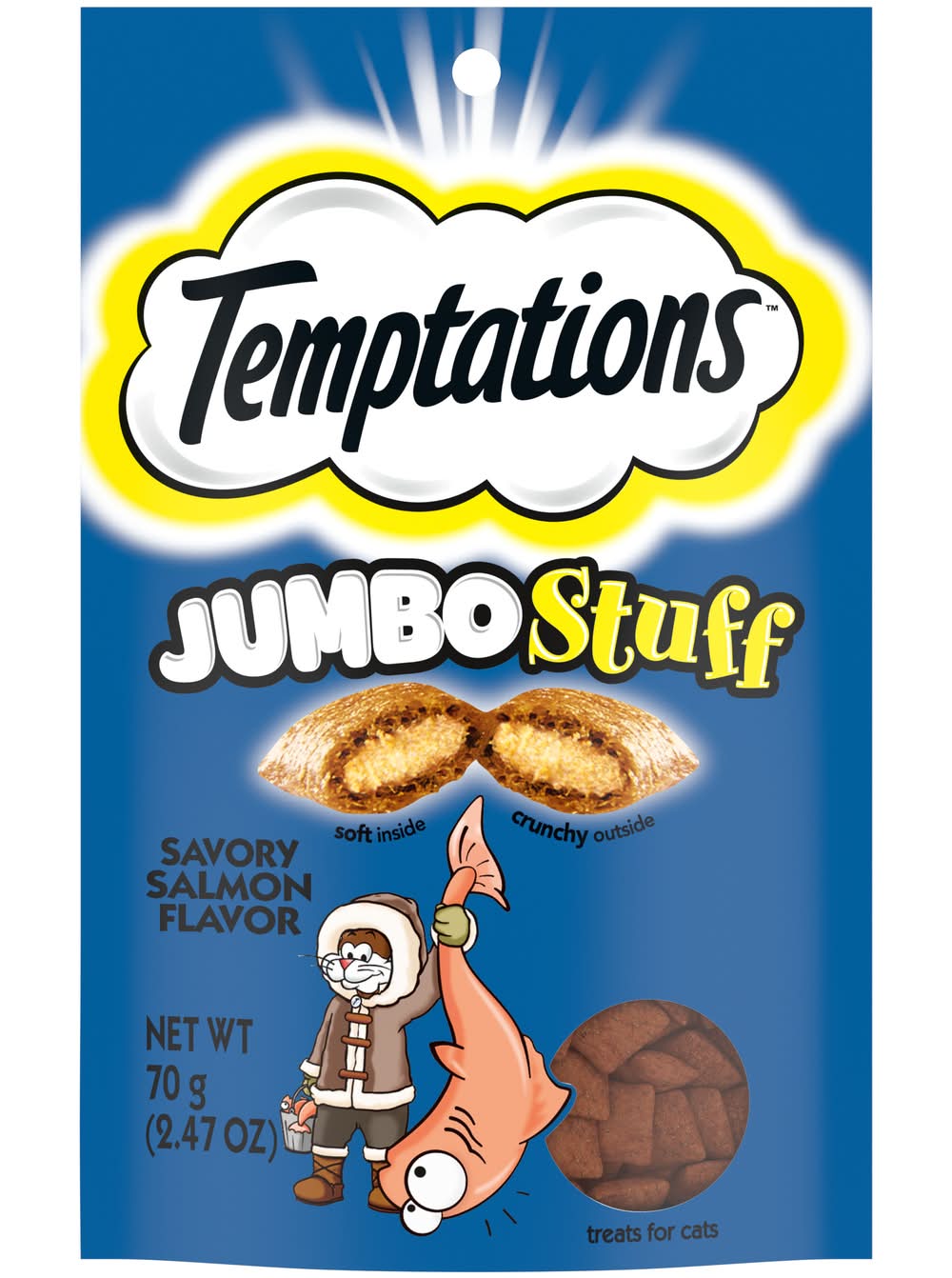 Temptations Jumbo Stuff Crunchy & Soft Cat Treats, Savory Salmon Flavor (2.47 oz)
