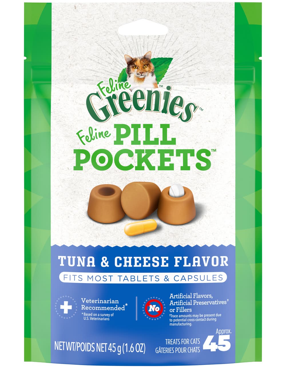 Greenies Feline Pill Pockets For Cats Natural Soft Cat Treats, Tuna & Cheese (1.6 oz, 45 ct)