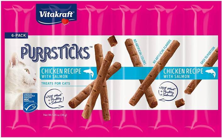 Vitakraft Purrsticks Chicken Recipe With Salmon Cat Sticks (1.26 oz, 6 ct)