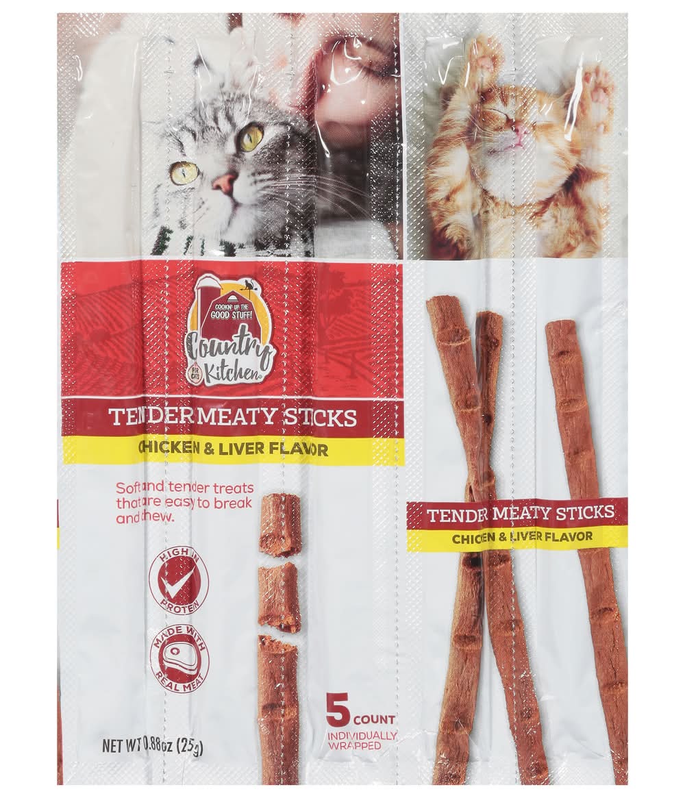 Country Kitchen Tender Meaty Sticks For Cats, Chicken & Liver (0.88 oz, 5 ct)