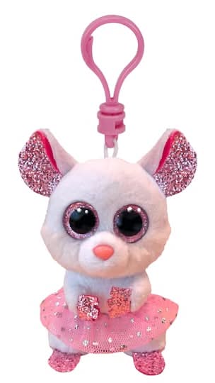 Beanie Boos Nina Mouse Ballerina Keychain, White-Pink