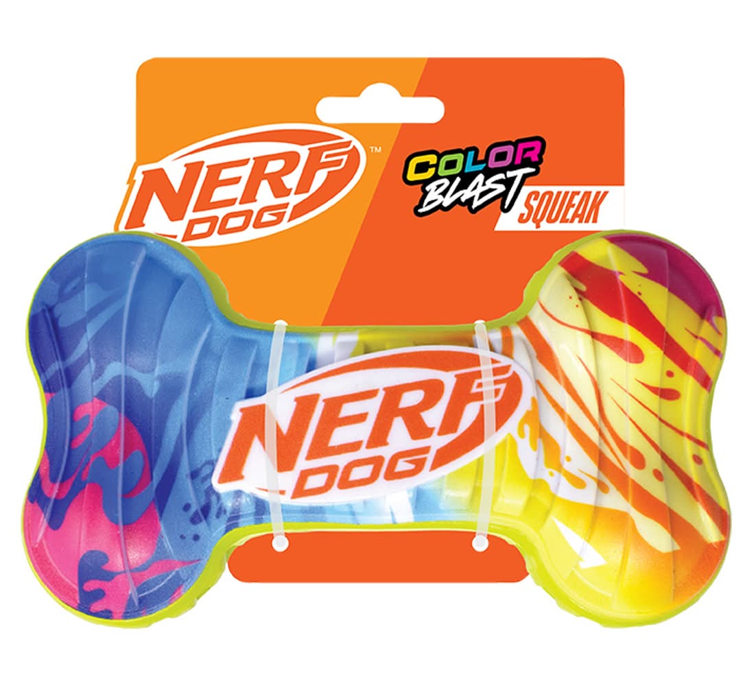 Nerf Dog Color Blast Squeaker Bone Dog Toy, S/M, Multi Color
