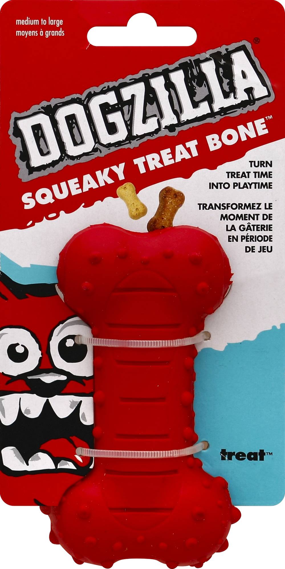 Dogzilla Squeaky Treat Bone Toy For Medium To Large Dogs (9.5 oz)