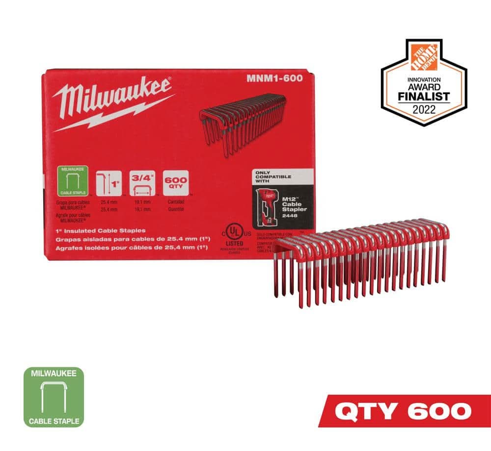 Milwaukee Insulated Cable Staples, 1 in (600 ct)