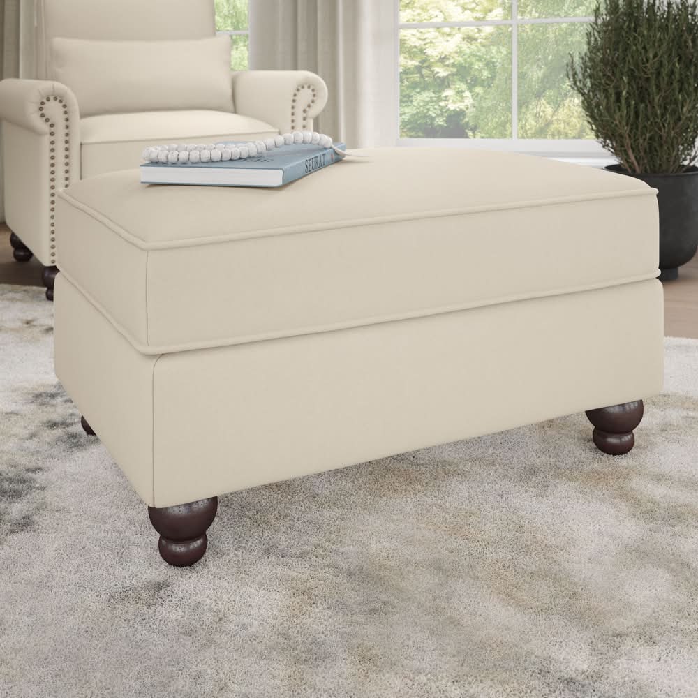 Bush Furniture Coventry Storage Ottoman, S, Cream Herringbone Fabric