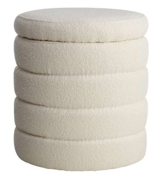 At Home Crosby St. Pax Boucle Round Storage Ottoman, Cream