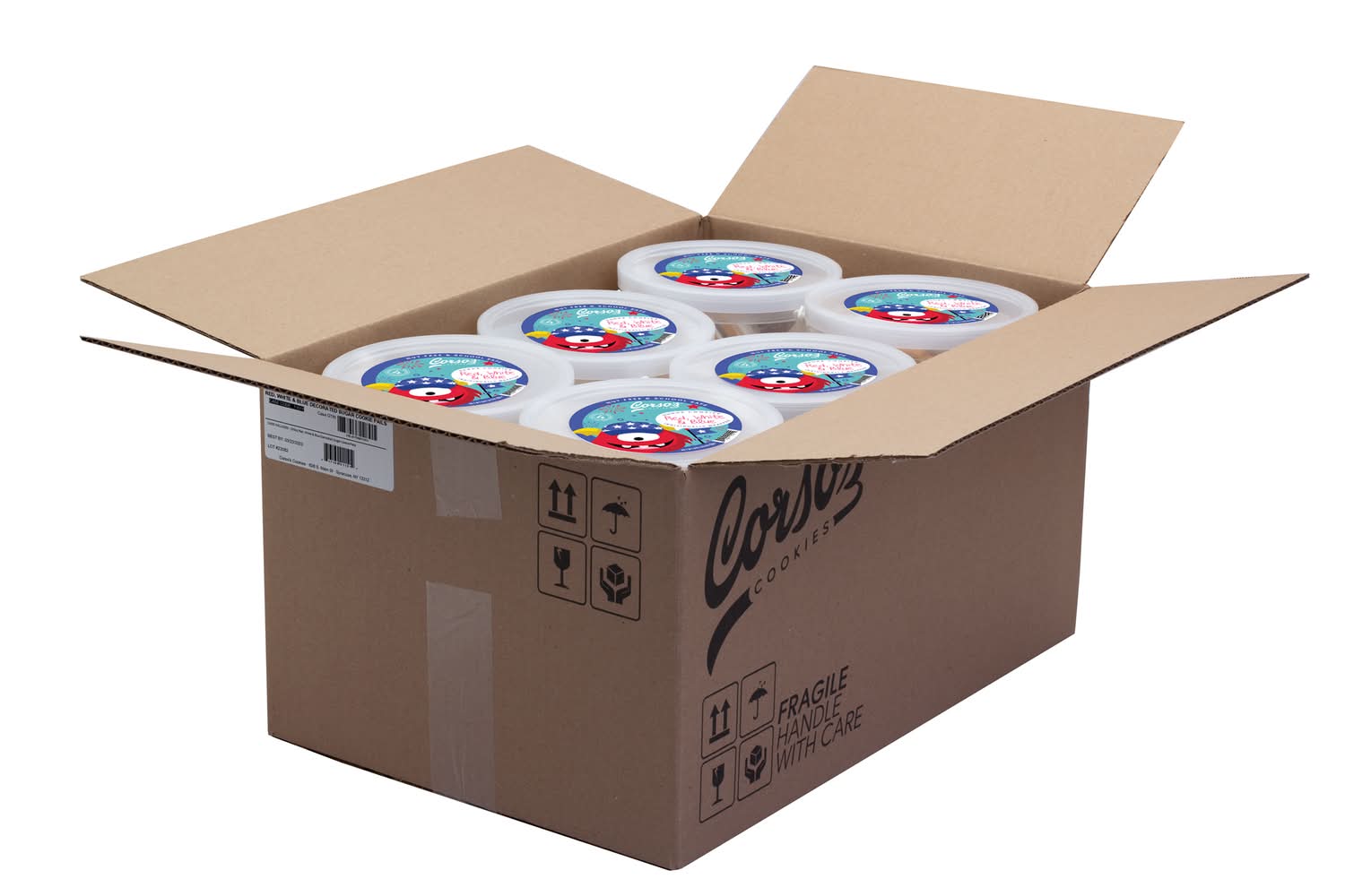 Corso's Cookies Decorated Sugar Cookie Pails, Red - White - Blue (8 oz, 6 ct)