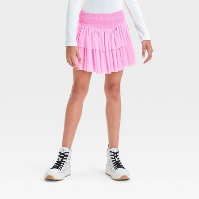 Art Class Girls Smocked Tiered Mesh Skirt, L, Rose Pink