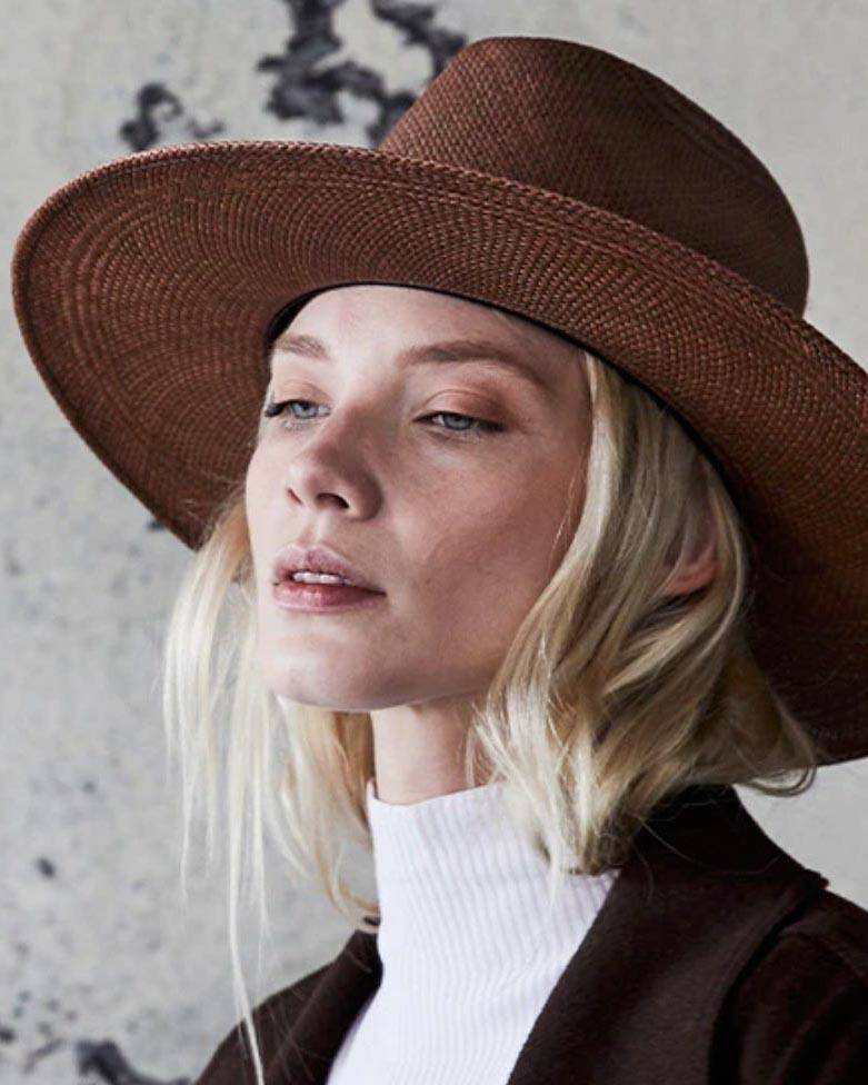 Straw Hat With Brim Binding, Brown-Tan-Black