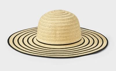 Shade & Shore Straw Essential Striped Floppy Hat, OS, Cream