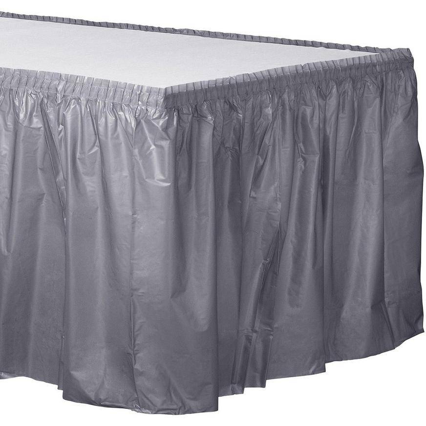 Party City Plastic Table Skirt, 21 ft x 29 in, Silver