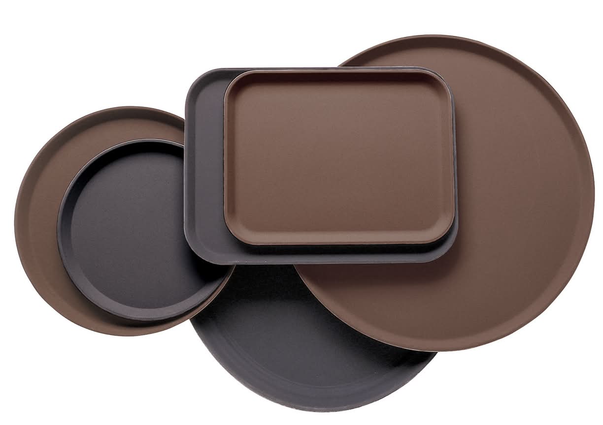 Cambro Round Camtread Serving Tray, 11 in, Tavern Tan-Black Satin (12 ct)