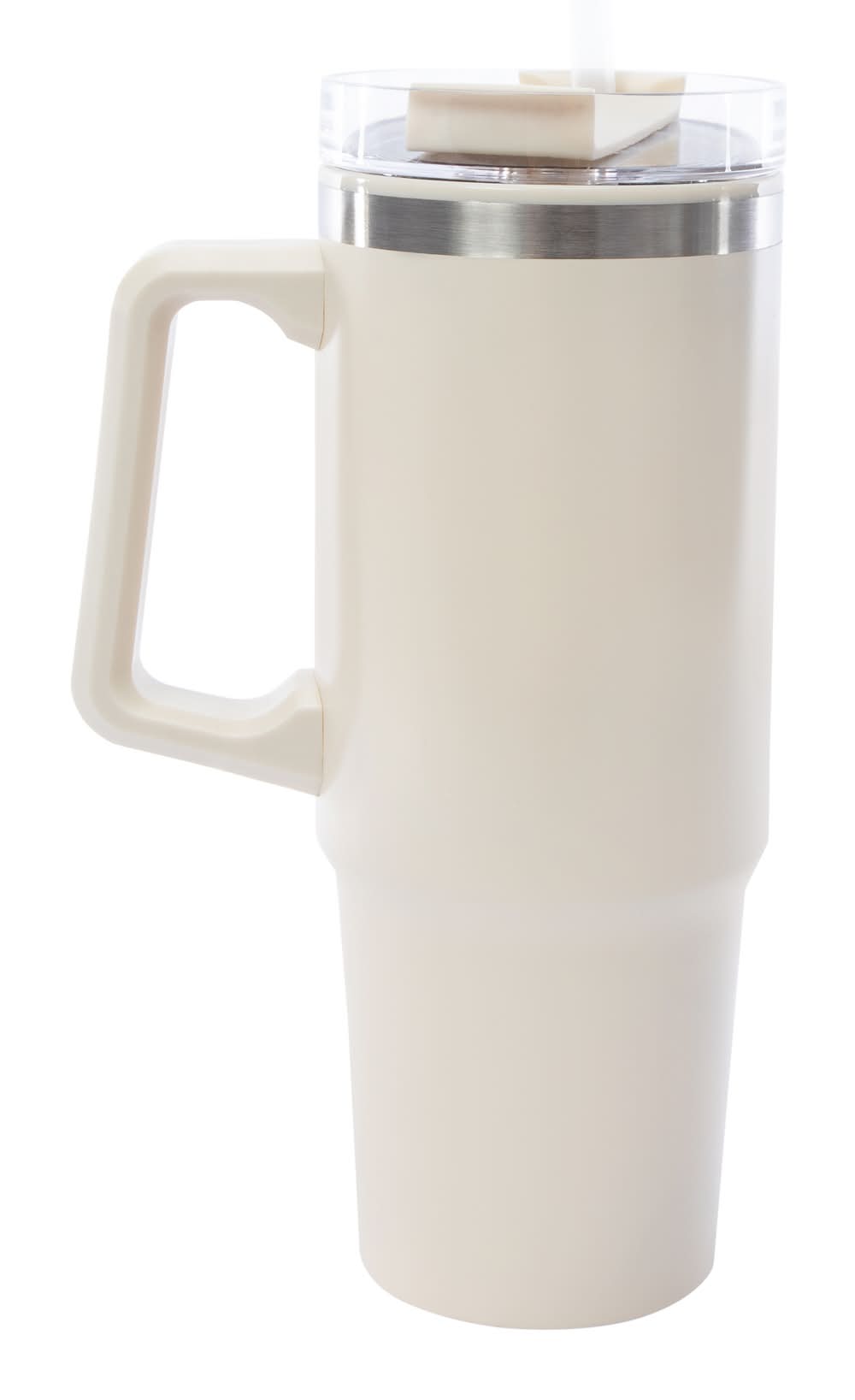 Hydraquench Stainless Steel Insulated Tumbler With Handle 30 oz, Cream