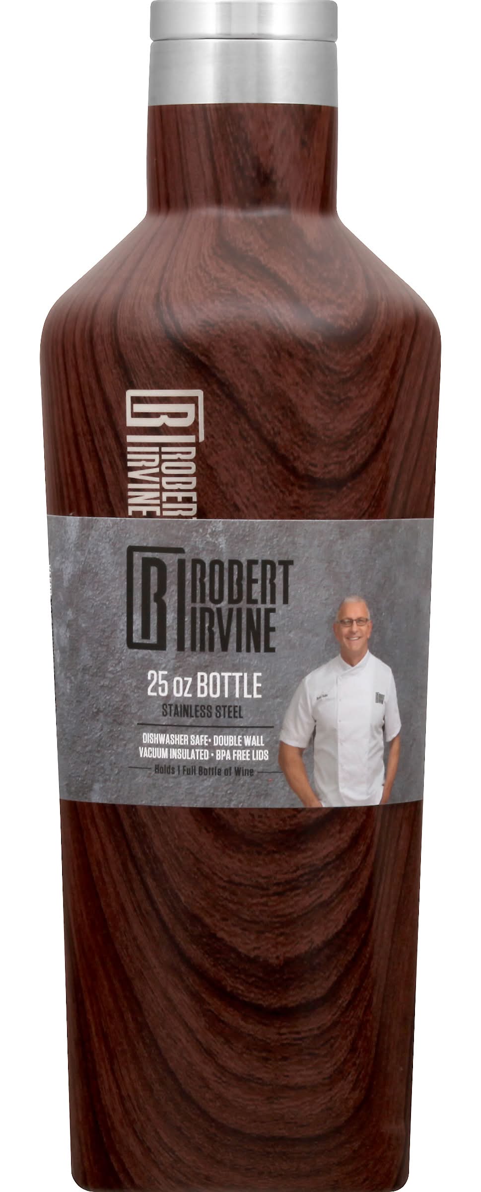 Robert Irvine Stainless Steel Double Wall Tumbler Hot & Cold Brown Wood