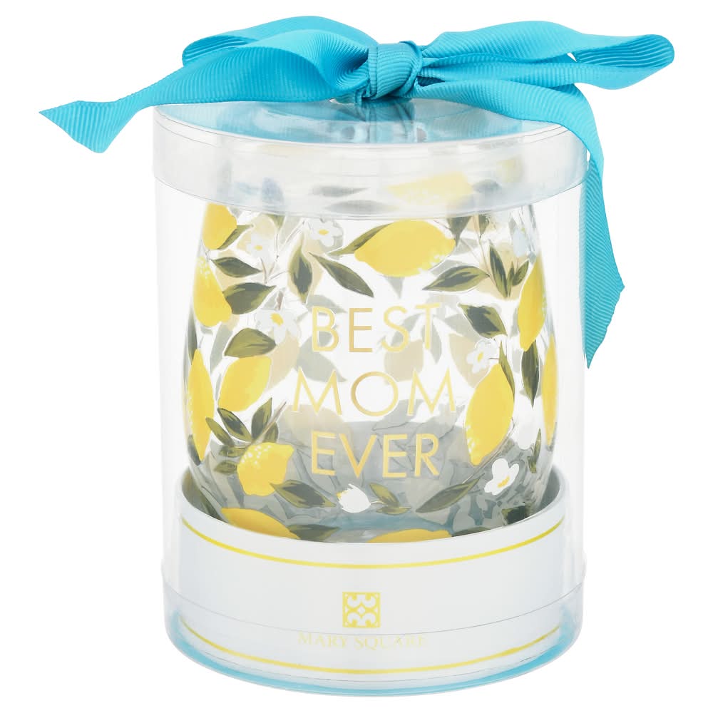 Mary Square Lemon Twist Stemless Wine Glass, Yellow Lemon