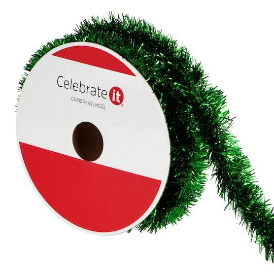 Celebrate It Tinsel Trim Ribbon, 1 Inch x 15 Ft, Green