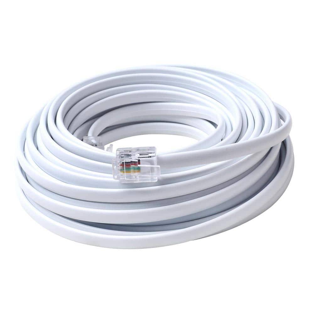 Commercial Electric Electric Telephone Line Cord Cable, 25 ft, White
