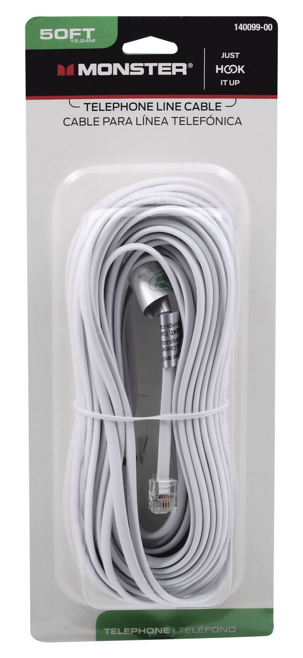 Monster Energy 50 Feet Just Hook It Up White Modular Telephone Line Cable (8 oz)