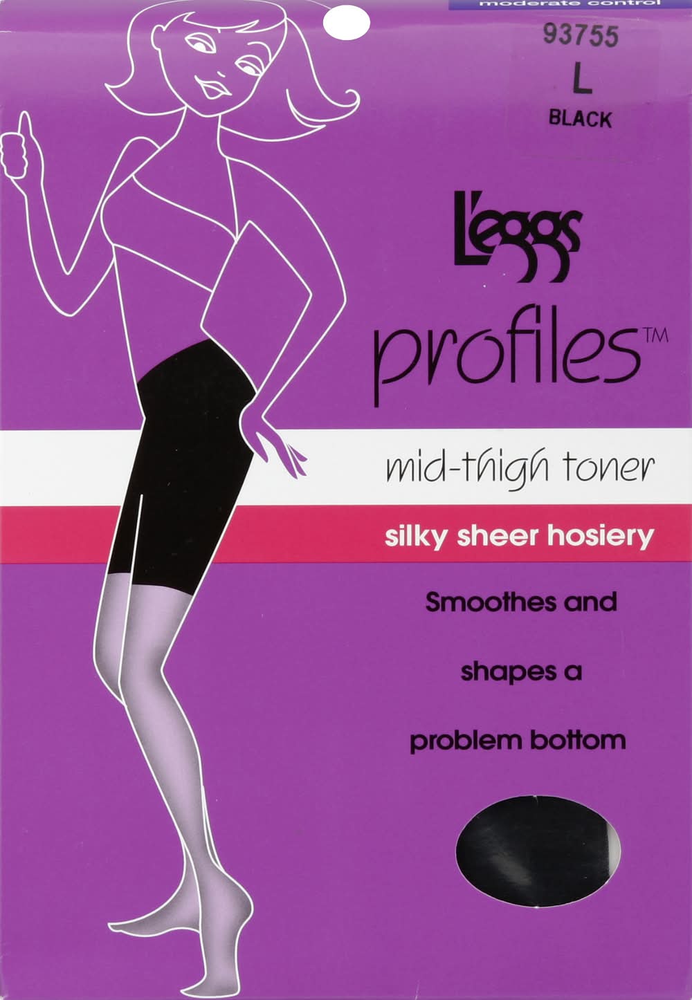 L'eggs Mid-Thigh Smoother, Size M, Black