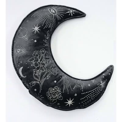 ZADORA Celestial Garden Embroidered Moon Shape Decorative Pillow