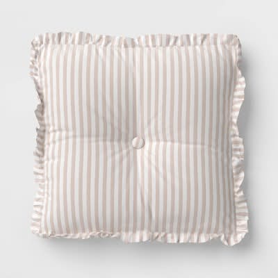 Threshold Oversized Square Stripe Pillow With Ruffle Trim, 22 in, Natural-White