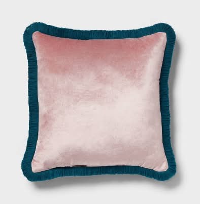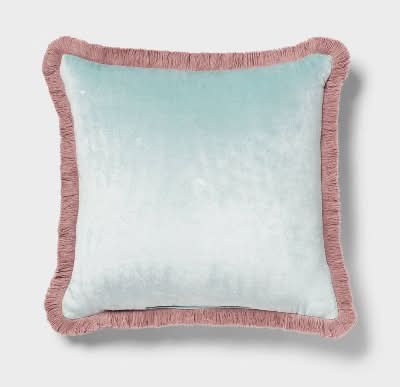 Threshold Velvet Contrast Fringe Dec Square Pillow, Light Teal Blue-Pink