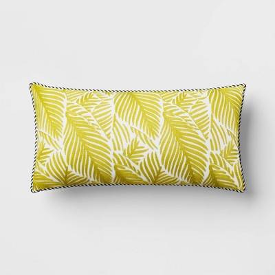 Threshold Palm Leaves Outdoor Lumbar Pillow, 10x20 in, Green