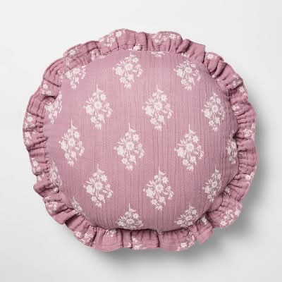 Threshold Round Ruffle Floral Jacquard Pillow, Purple-Cream