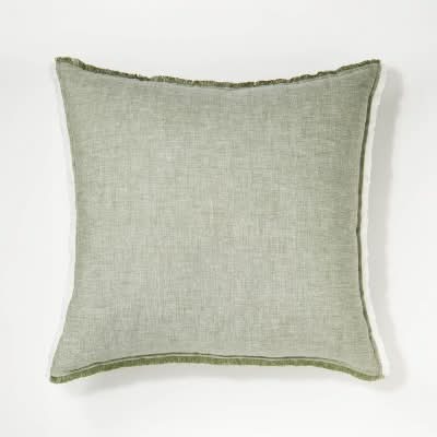 Threshold Oversized Reversible Linen Square Throw Pillow With Frayed Edges, Green