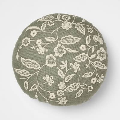 Threshold Embroidered Floral Round Pillow, 14 in, Army Green-Cream