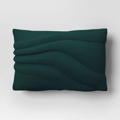 Room Essentials Lumbar Cotton Jersey Quilted Puff Toss Throw Pillow, 12x18 in, Green