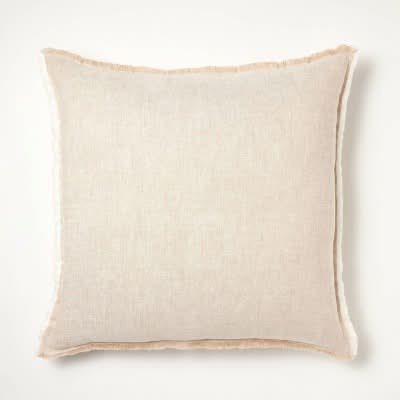 Threshold Designed with Studio McGee Oversized Reversible Linen Square Throw Pillow With Frayed Edges, Beige