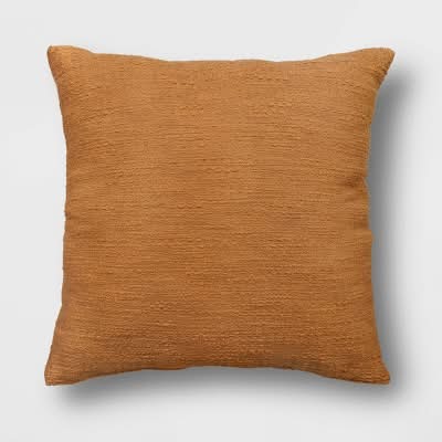 Threshold Oversized Square Cotton Boucle Reversible Throw Pillow, 24 in, Light Brown